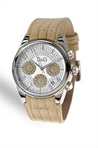 D&G Sandpiper Leather Beige Designer Watch DW0258. Quartz movement chronograph. Stainless steel case. Enamel crown and push buttons. Mineral glass. Spheres treated with luminescent material. D&G personalized jewellery buckle. Silver one Textured Finished Dial Steel with Luminous Inserts finished Hands High Quality Quartz Movement Truly elegant but functional Chronograph Beige Leather strap Secure Tang Buckle Clasp Fastening Water resistant to 5 ATM (approx. 50meters/164feet) Stunning Elegant Card and Inner Leather Effect display case Max. Strap Length 220mm