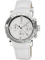 Stainless steel case with a white leather bracelet. Fixed stainless steel bezel. White dial with silver-tone hands and index markers at the 3 6 9 and 12 o'clock positions. The D&G logo appears below the 12 o'clock position. minute markers around the outer rim. Date display at the 4 o'clock position. Chronograph - three sub-dials displaying: 60 seconds 60 minutes and 24 hours. Quartz movement. Scratch resistant mineral crystal. Steel crown. Solid case back. Case diameter: 42 mm. Case thickness: 12 mm. Tang clasp. Water resistant at 30 meters / 100 feet. Dolce and Gabbana Genteel Ladies Watch DW0679.[]